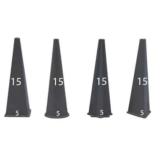 چهار عدد قالب هرمی پلاستیکی ابعاد: ارتفاع ۱۵ سانتیمتر در قطر ۵ سانتی متر